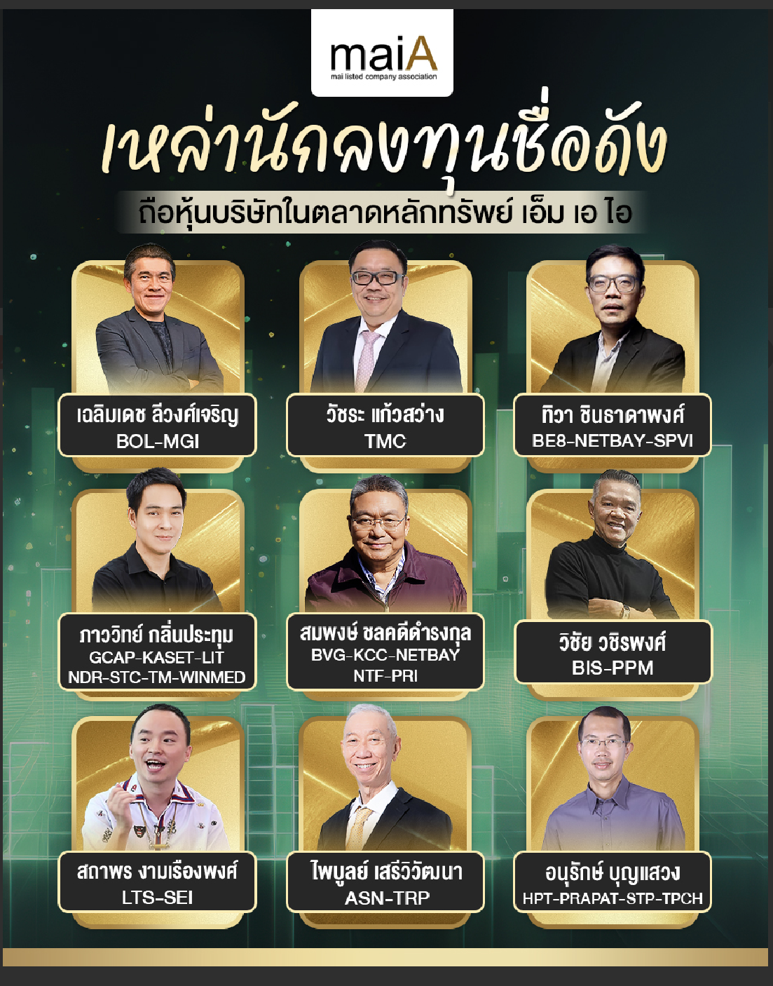 เหล่านักลงทุนชื่องดัง ถือหุ้นบริษัทในตลาดหลักทรัพย์ เอ็ม เอ ไอ
