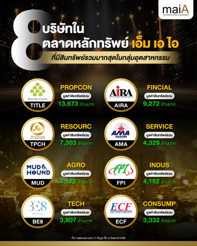 8 บริษัทใน mai ที่สินทรัพย์รวมมากสุดในกลุ่มอุตสาหกรรม